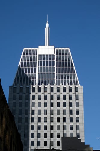 This 24-story tower in San Francisco’s financial district is clad with polished barre grey granite on truss frame by Clark Pacific.