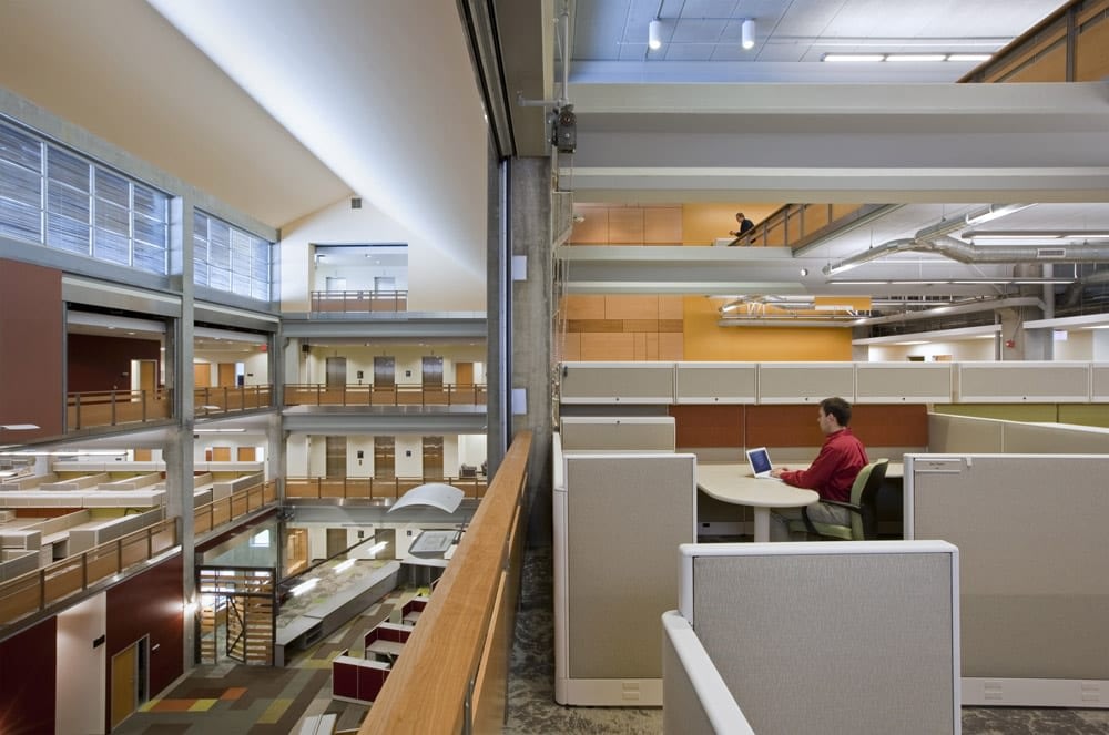 is its 4-story interior “Canyon” which harvests natural light from south facing clerestory skylights.