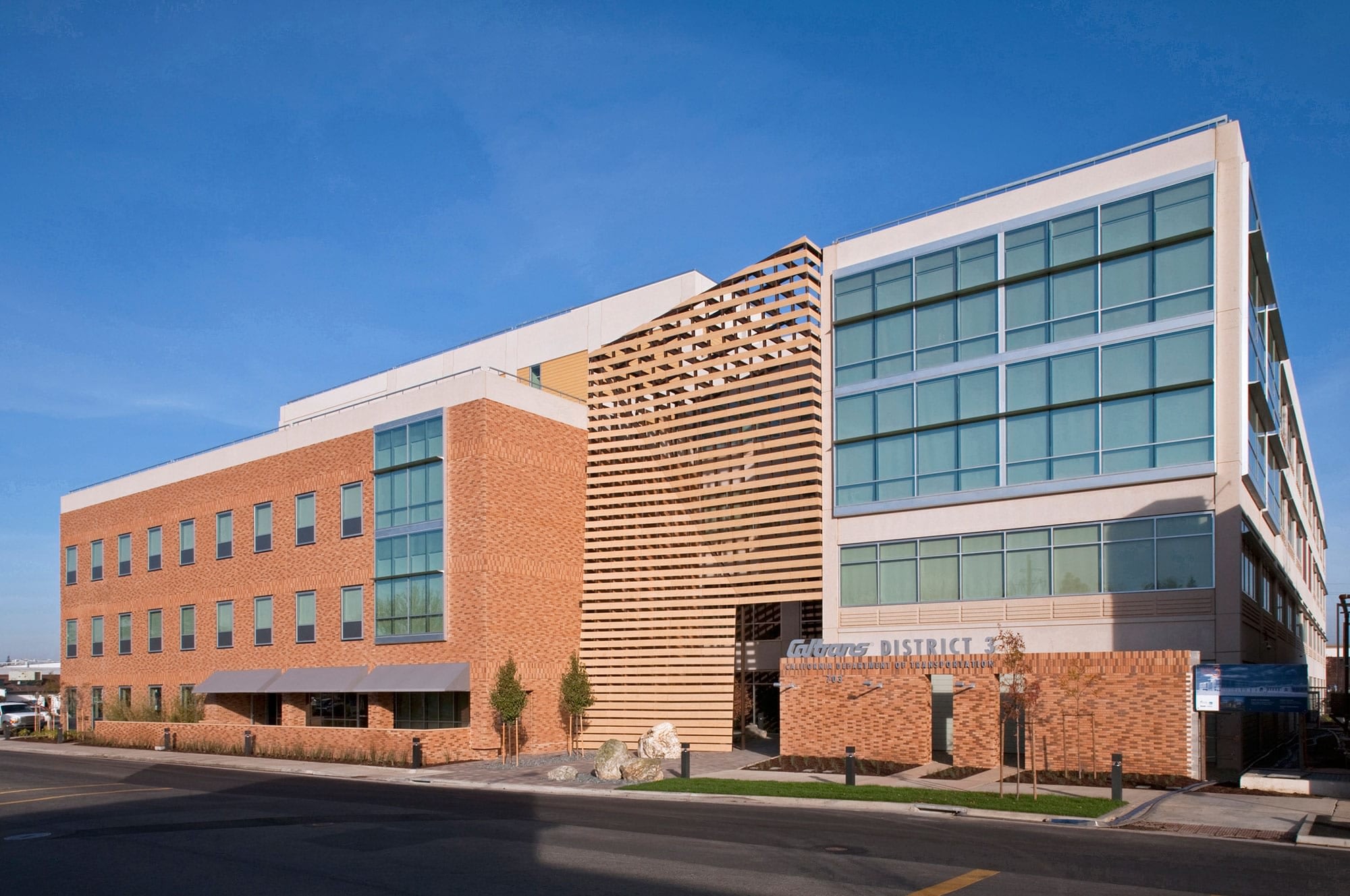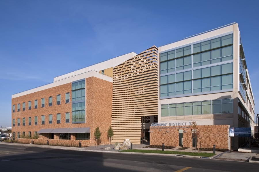 This design-build project is a $65M, 230,000 SF five-story Class A office building that houses 800 employees and features a 200-seat auditorium, meeting spaces, public counters, loft-like open offices with high ceilings and lots of natural lighting. Designed for a LEED Silver rating, the project offers employees work spaces that are never more than 37 feet from the building perimeter or the four-story interior “canyon” which brings in natural light from south facing clerestory windows.