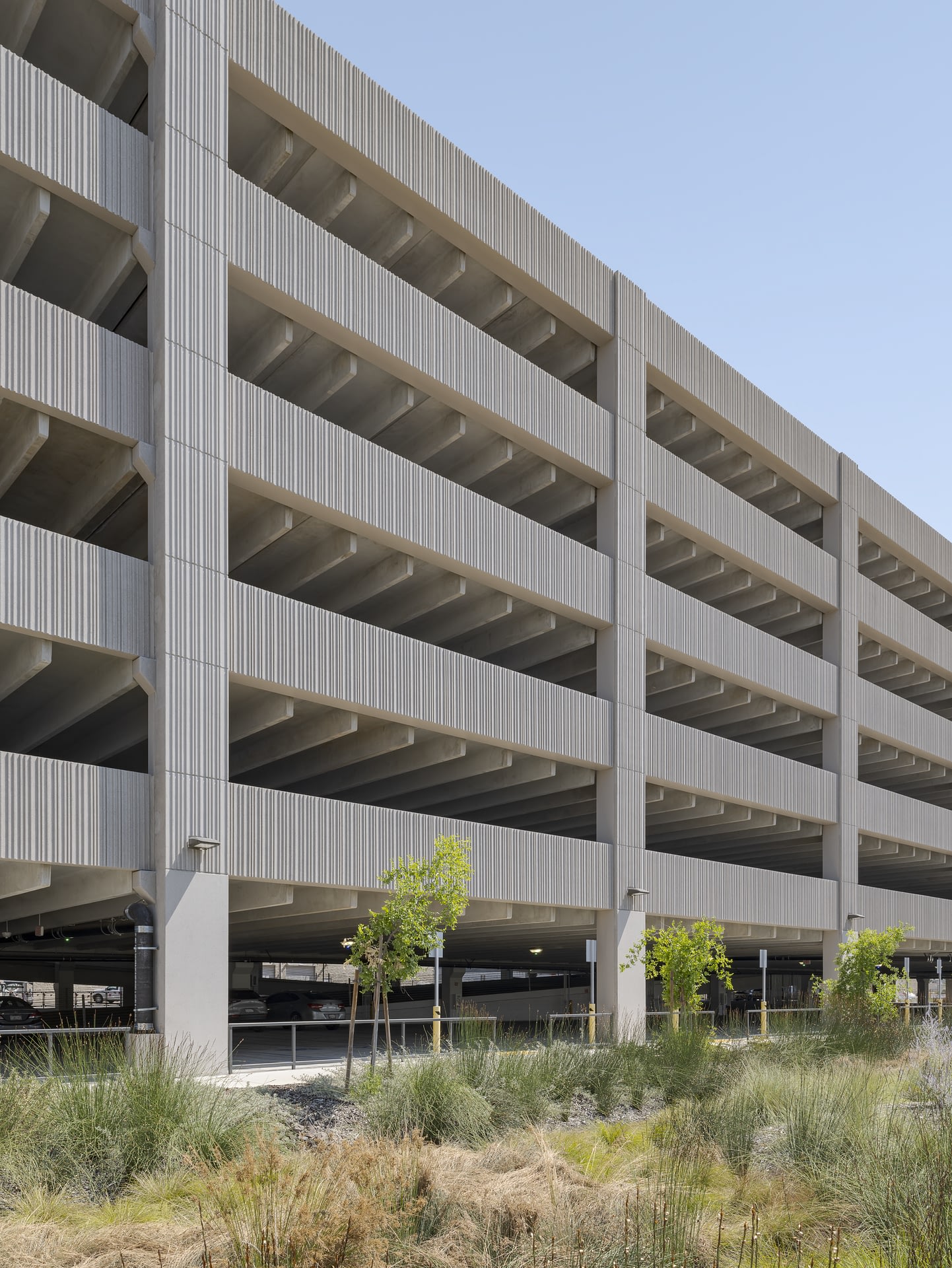 Anticipating future growth, the structure’s entries and exits are designed for easy expansion from two to three lanes as demand increases. Parking Structure 6 is designed to meet Parksmart Platinum certification standards and achieve a Platinum rating from the U.S. Resiliency Council (USRC), ensuring sustainability, resilience, and long-term value.