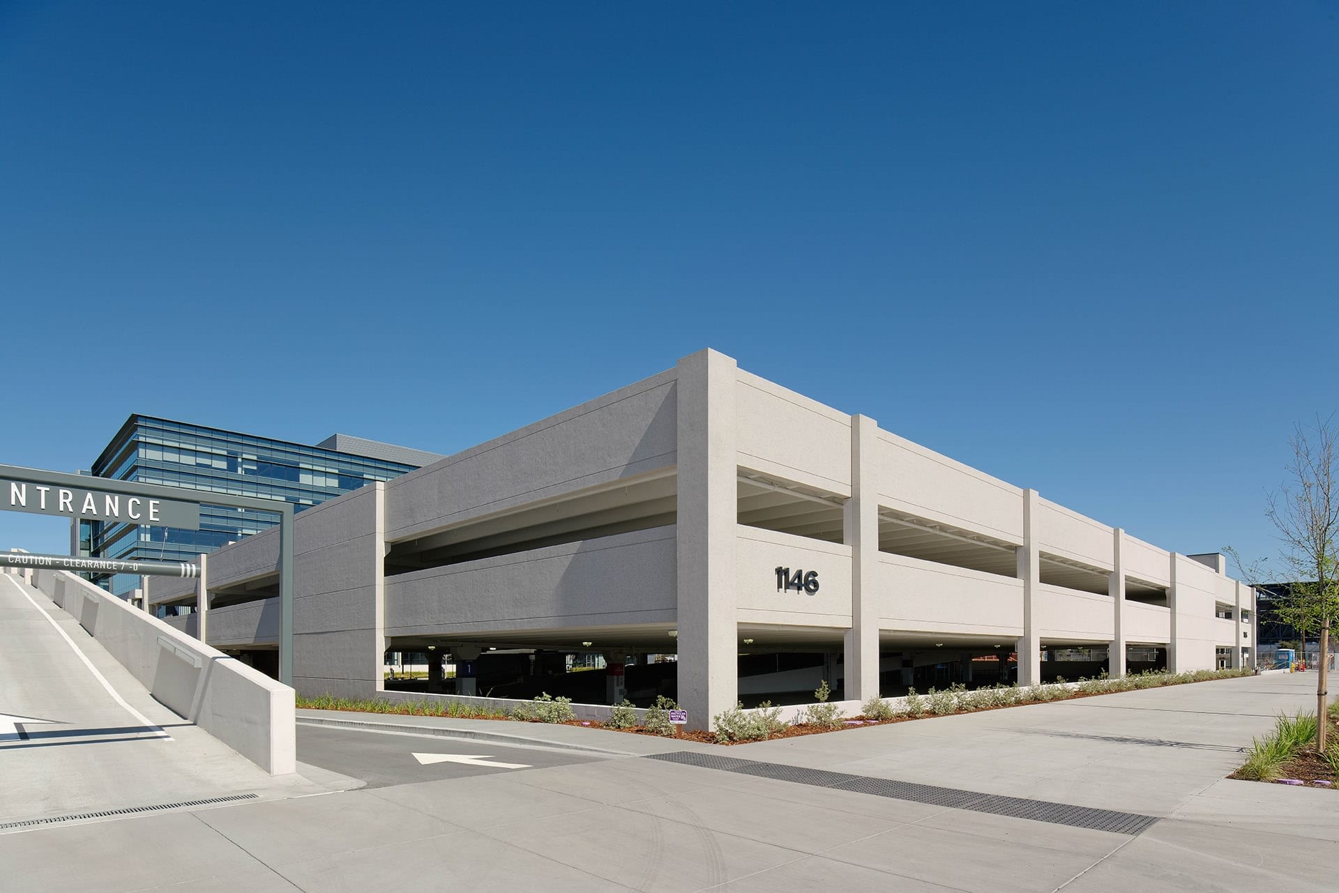 Coleman Highline Parking Structure 1, sitting at 3-stories along with the 5-story Coleman Highline Parking Structure 2 are two of four parking structures for the Coleman Highline Development in the city of San Jose. With dual-purpose roles, the structures support two important uses: a multi-tenant office building and the parking requirements for the San Jose Earthquakes. This dual role led to adding a speed ramp that allows for better performance of the structures in terms of entering and exiting. As for the aesthetics, this project combines precast elements with architectural elements such as the Corten steel accents from the office building to complete the aesthetic language. This allows the parking structures to fit in naturally with their surroundings while providing the much-needed parking of the area.