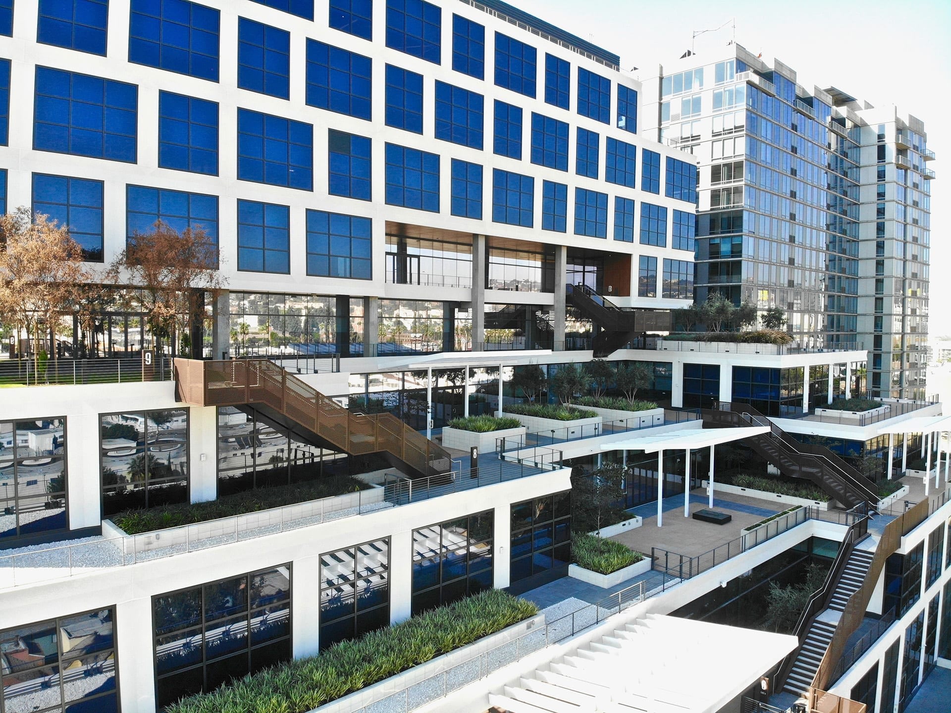 With its unique staggered look, resembling a staircase of sorts, EPIC Sunset (5901 Sunset) is truly epic. This building is located in Los Angeles and utilizes our Architectural Precast Concrete to create a beautiful exterior. The precast panels reduce in thickness to a minimum point at the center of the panel. This creates a panel cross-section shape that resembles a “bowtie.” In addition, the back of terrace spandrels was “seeded” with aggregate to replicate the formed finish of the face and edges of the panel. Fun fact: Netflix leased the building before it was even completed and added some redesign to suit their needs.