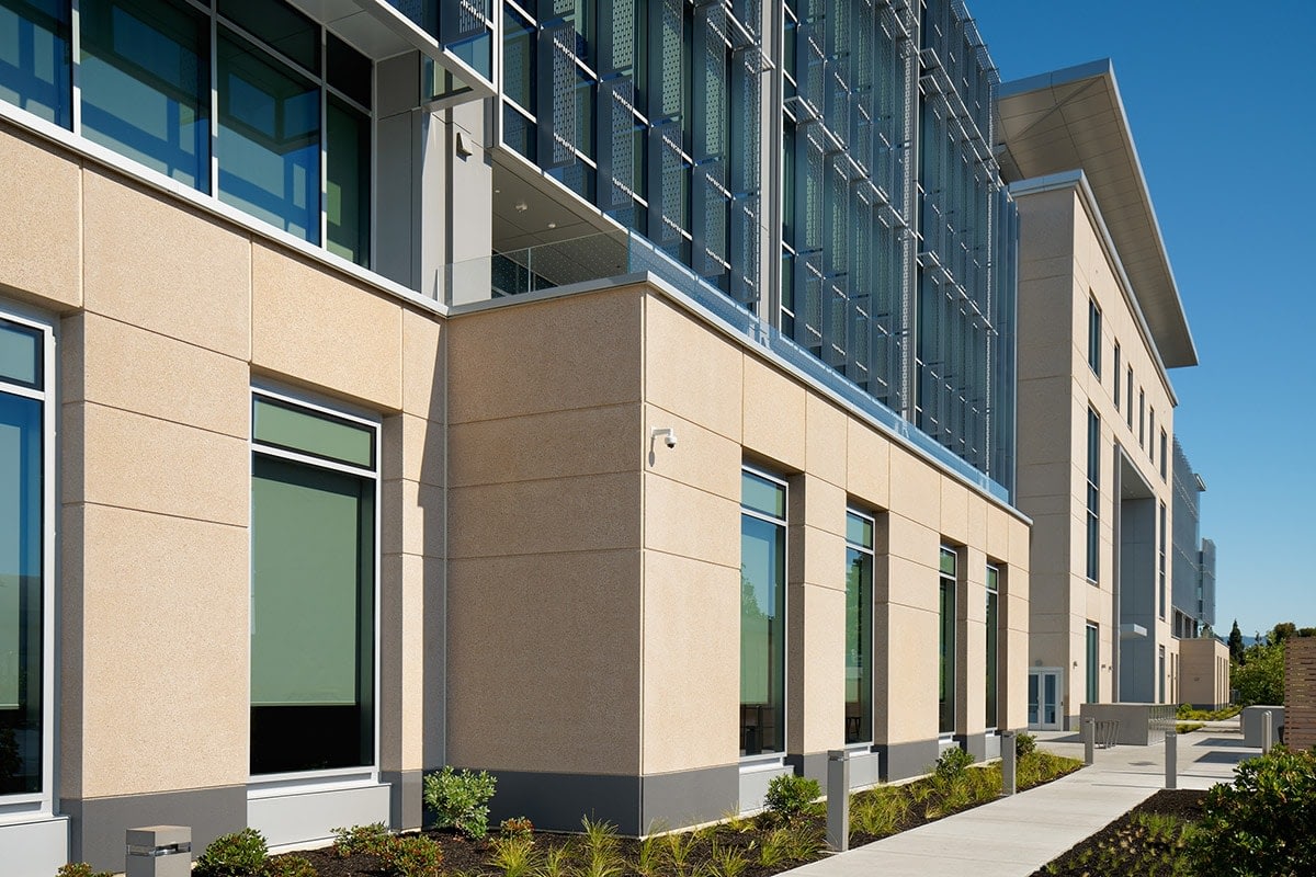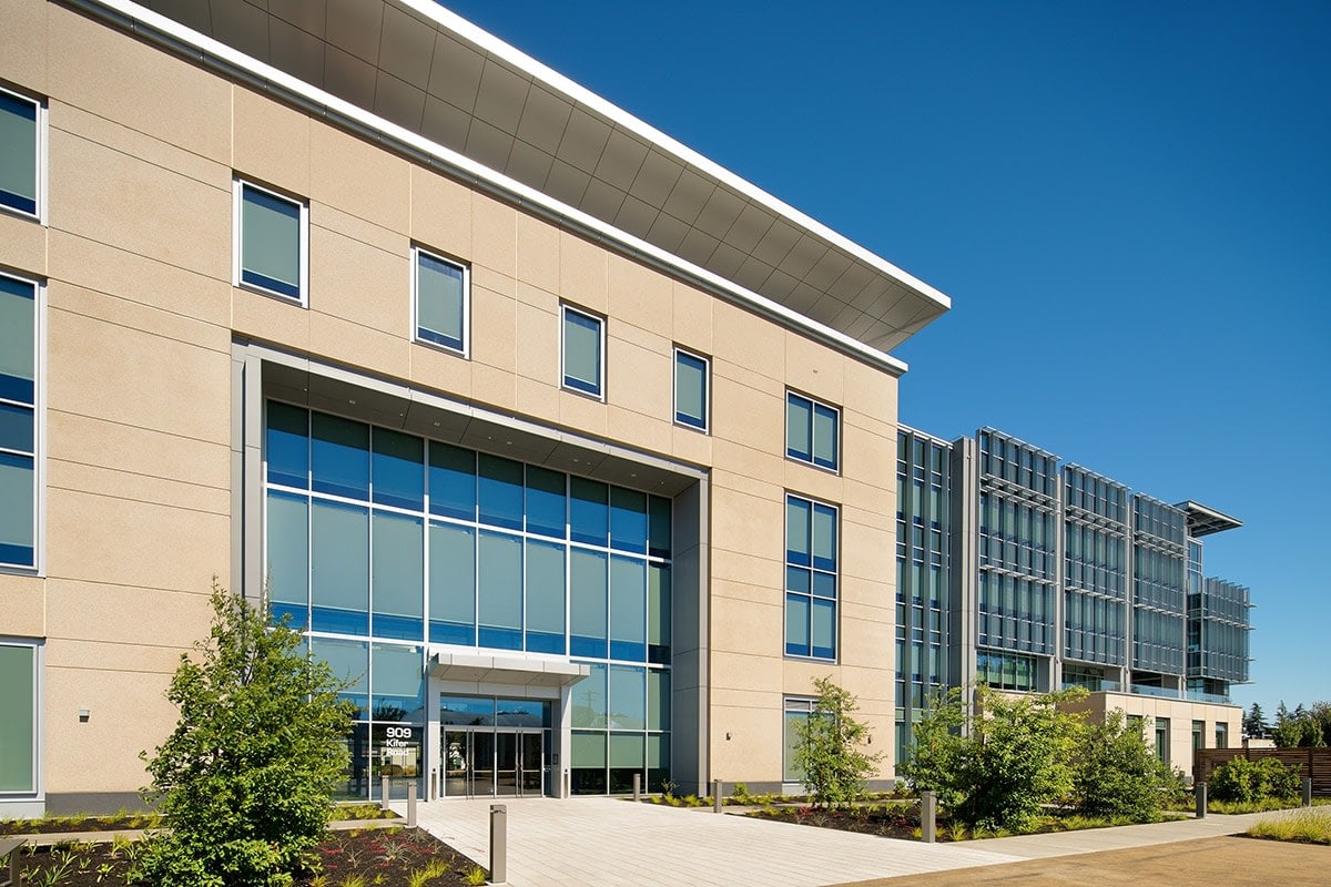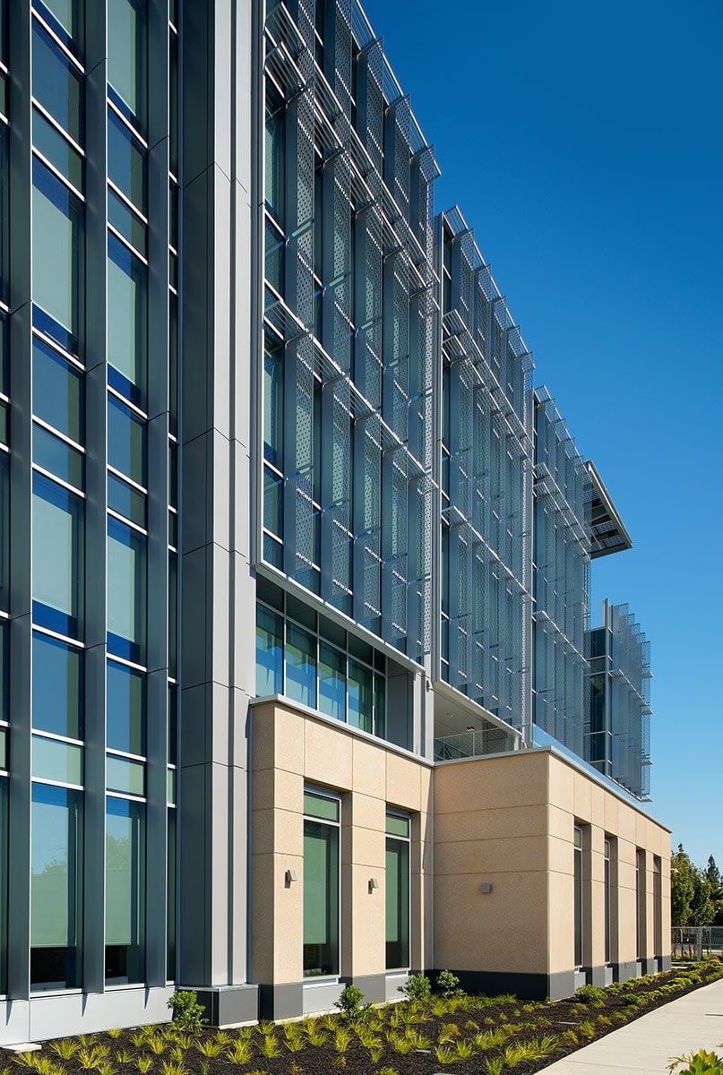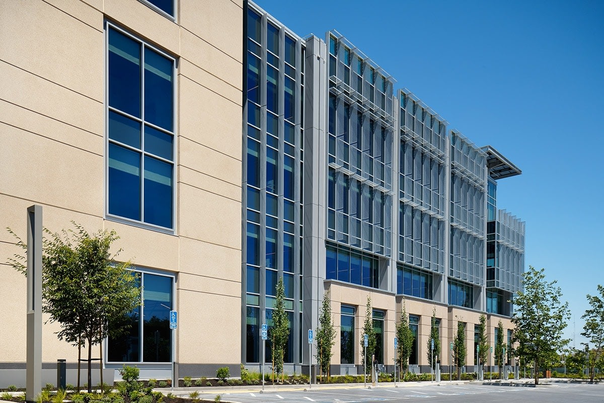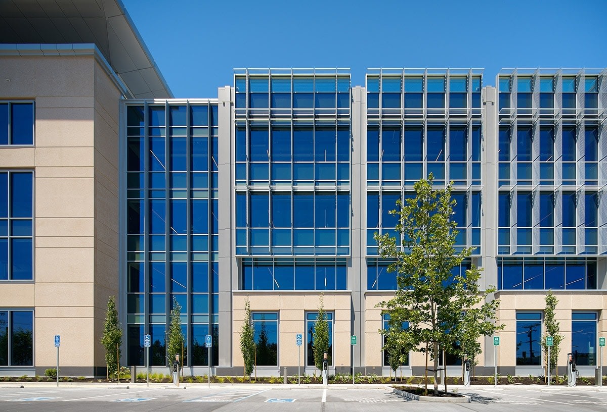 Fortinet’s headquarters was designed to achieve LEED Gold Certification. The building will use 30% less energy per year than the typical all-electric office building. Like Apple’s Cupertino campus, Clark Pacific also supplied the building with integral radiant cooling in the concrete structural precast system.
