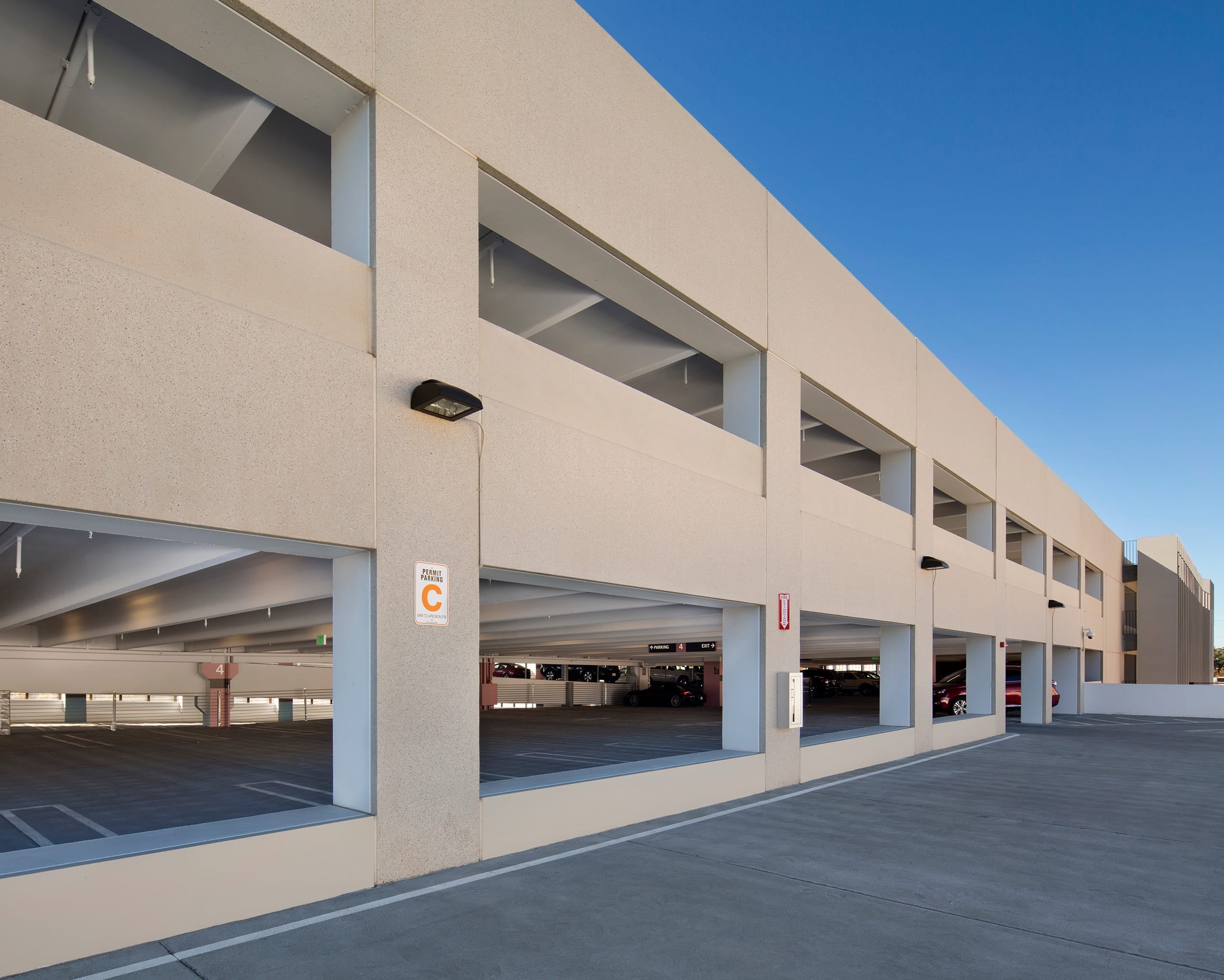 The Hoover garage offers over 1,000 parking stalls, including 300 patient/visitor spaces. The 8-level structure, with two below grade structures employs a Precast Hybrid Moment Frame system for seismic resistance. This proven system is the only structural system available that is designed to self-right structures after seismic events. The system, incorporating architectural finishes, is ideal for essential service structures such as hospitals that require immediate re-occupancy after seismic events due to the critical services they provide. It is also an inexpensive way for owners to protect their significant building investment.