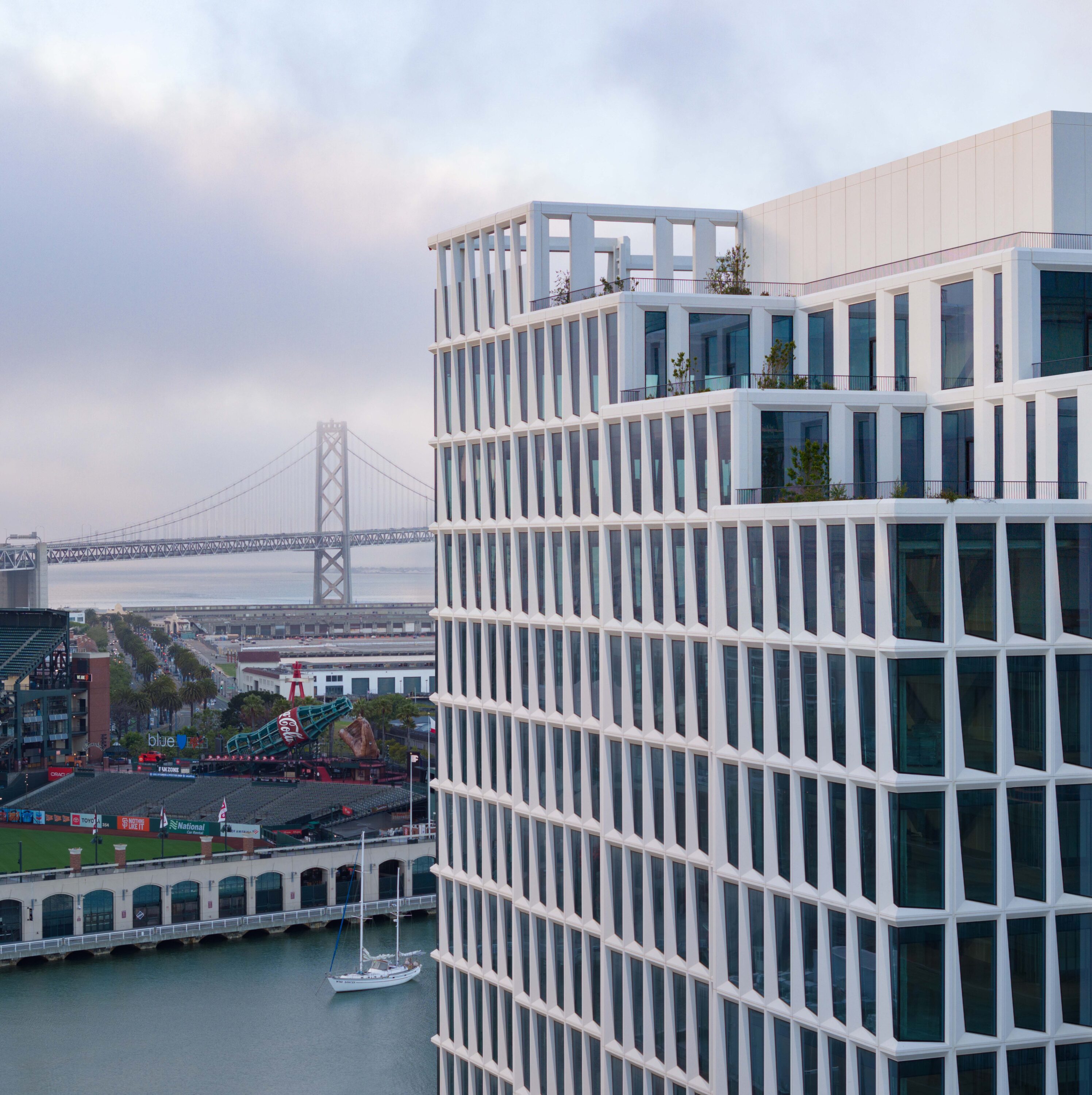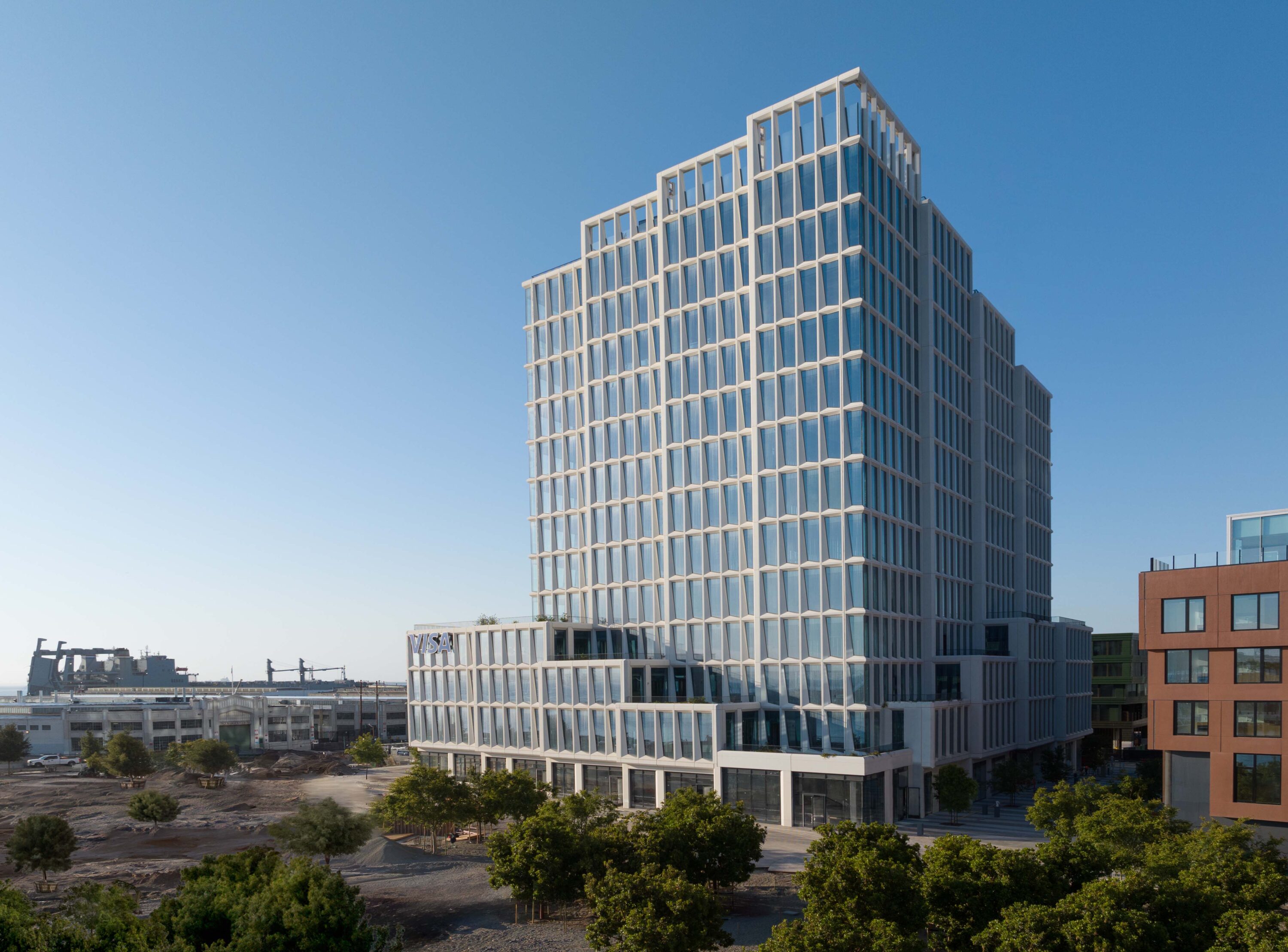 Home to Visa’s Global Headquarters, this 13-story, nearly 300,000-square-foot commercial building is located between Dr. Maya Angelou Way, Bridgeview Way and Toni Stone Crossing and borders the edge of China Basin Park. Inspired by the geologic rock formations of California’s Devil’s Postpile near Yosemite National Park, the building features dramatic views of the San Francisco Bay and Oracle Park along with 360-degree retail at the ground-floor level.