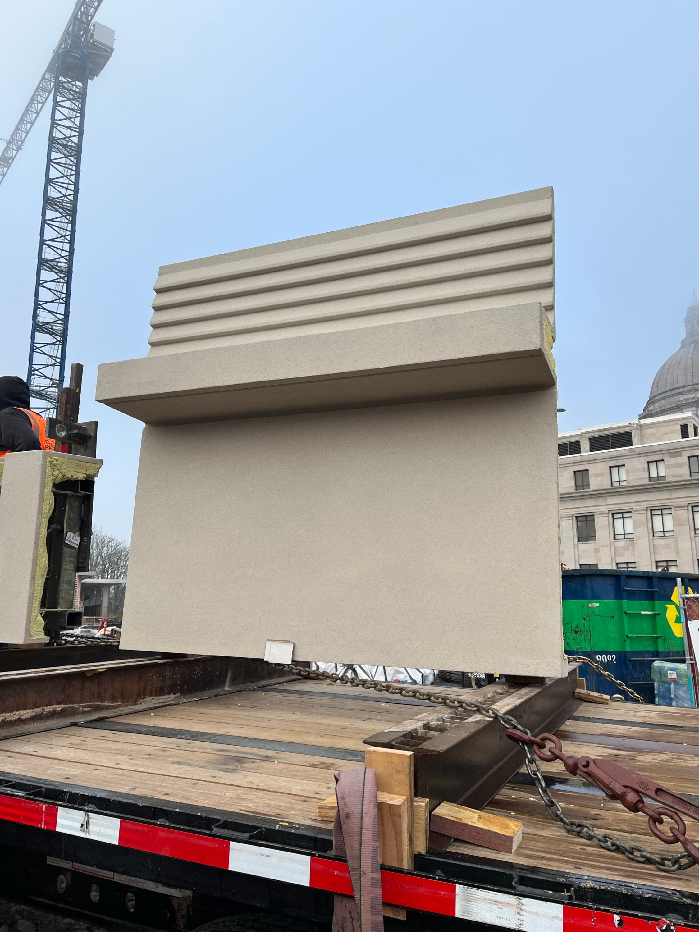 Clark Pacific is assisting with the renovations with 29,732 square feet of custom frame Glass Fiber Reinforced Concrete (GFRC) panels, which will be used for the new facade. This will include wall panels, spandrels, sills, column covers, and infill, creating a cohesive design that integrates seamlessly with the existing structure. The use of A-board mix with form liner will ensure the facade complements the building’s historical aesthetic.