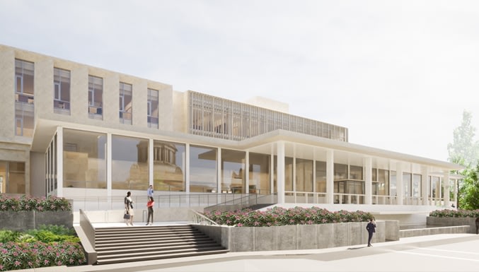 The project involves a four-story expansion of the existing facility, which includes seismic and mechanical, electrical, and plumbing (MEP) upgrades, as well as interior renovations to restore the building’s dignity while providing a functional legislative workspace. The expansion will add a new wing for House of Representatives offices and features seismic stabilization for the building’s adjacent steep hillside. The building’s transformation from a mostly windowless book storage area into a bright, welcoming office space emphasizes a commitment to preserving the historical character of the building while modernizing it for 21st-century legislative functions. (Out of the Shadows: Bringing Light to a Modernist Icon – Work Design Magazine)