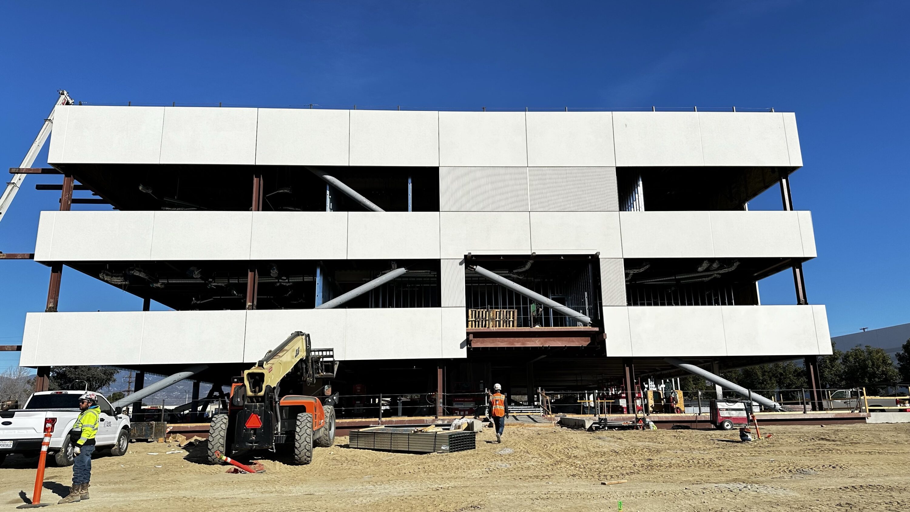 Clark Pacific was proud to support the construction of the new San Bernardino County (SBC) Valley Communications Center, (County breaks ground on new Valley Communications Center – Welcome to San Bernardino County) a cutting-edge emergency and disaster response facility. As part of the project, Clark Pacific manufactured and erected large, flat concrete skin spandrels that form a critical component of the building’s resilient and durable exterior.