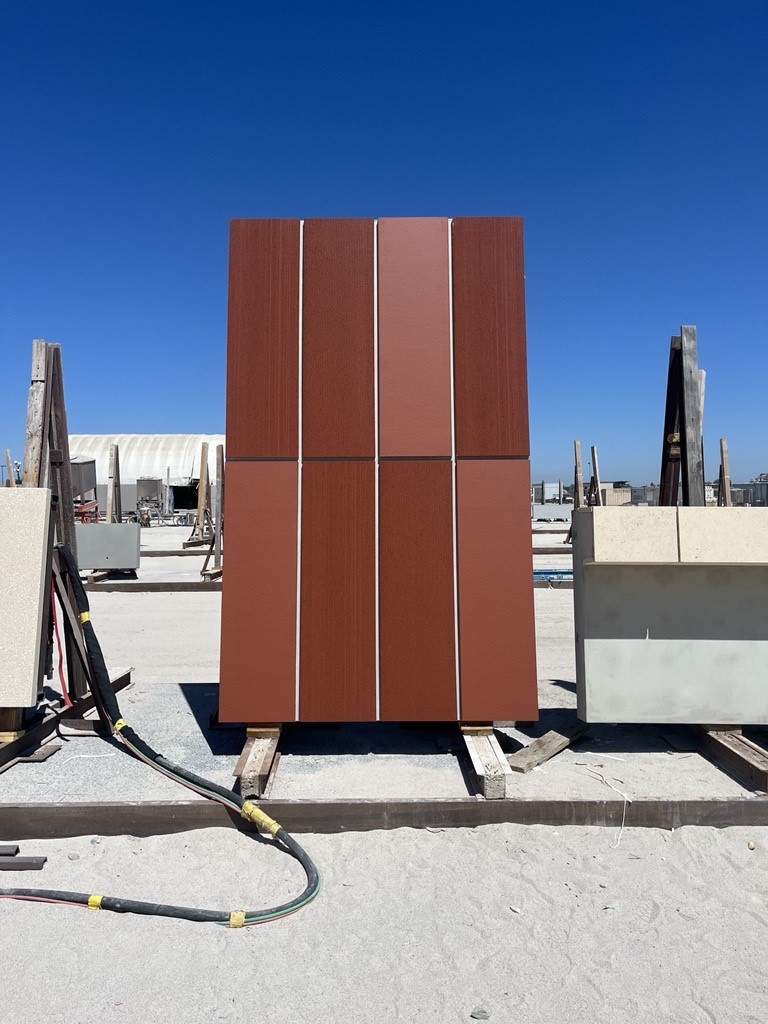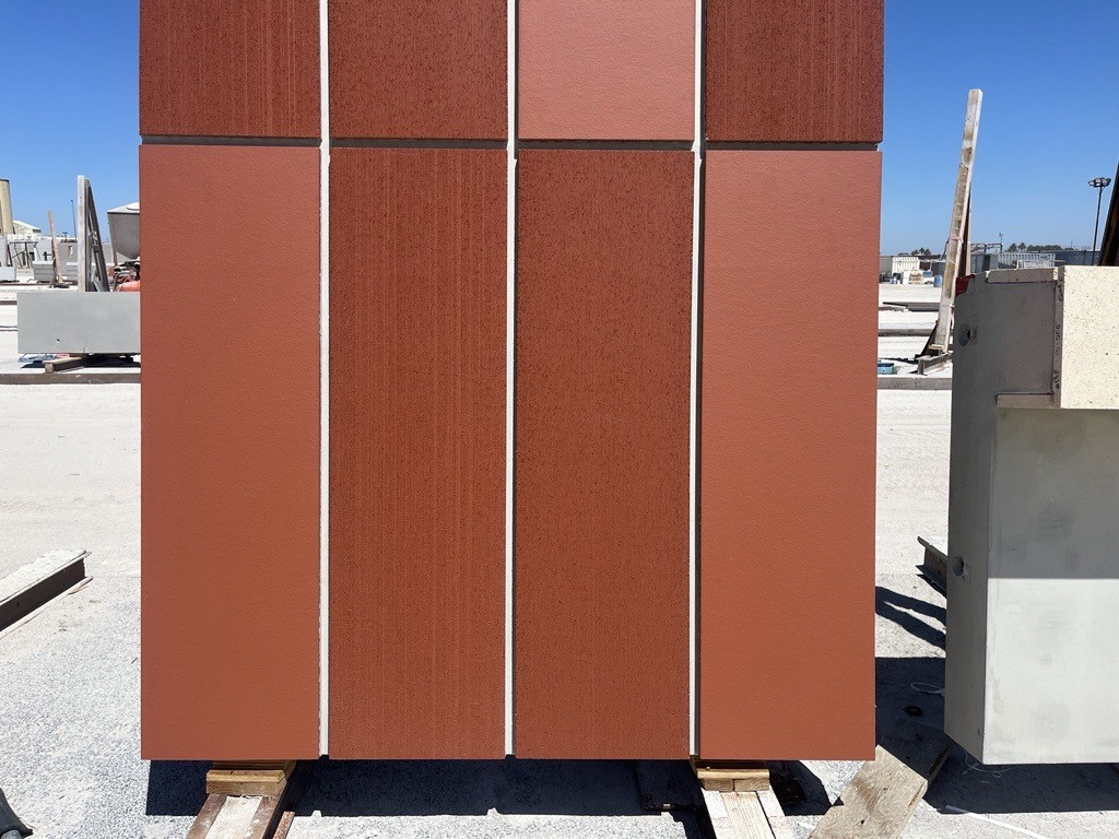 The new facility features a 3-story podium set against a striking 10-story tower, both constructed with steel frames and wrapped in a prefabricated concrete envelope. Clark Pacific’s scope included more than 400 wall and eyebrow panels spanning 54,684 square feet, showcasing a sophisticated mix of natural finishes—sandstone and terracotta stones on architectural precast.