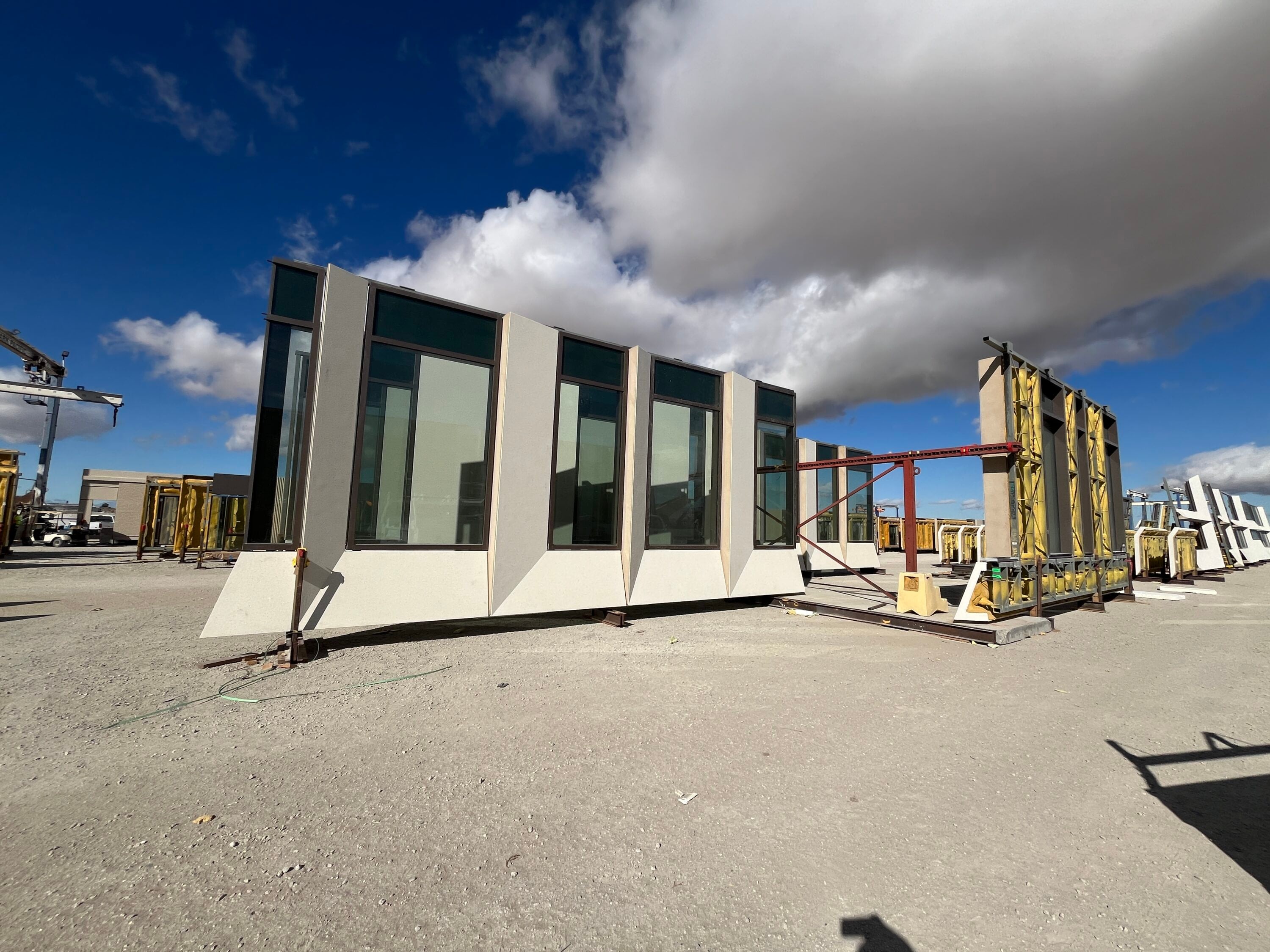 Clark Pacific manufactured and installed 63,131 square feet of prefabricated facade systems, including 49,380 square feet of custom GFRC frames and 13,751 square feet of punched window units. The project features two colors of GFRC with painted GFRC frames and 2,133 square feet of form liner detail to achieve its distinctive architectural appearance. Additionally, this job includes 13,751 sqft of punched windows that were installed into the facade panels during manufacturing. Spray foam insulation was applied at the plant to enhance energy efficiency, while intumescent paint was applied on-site for added fire protection.