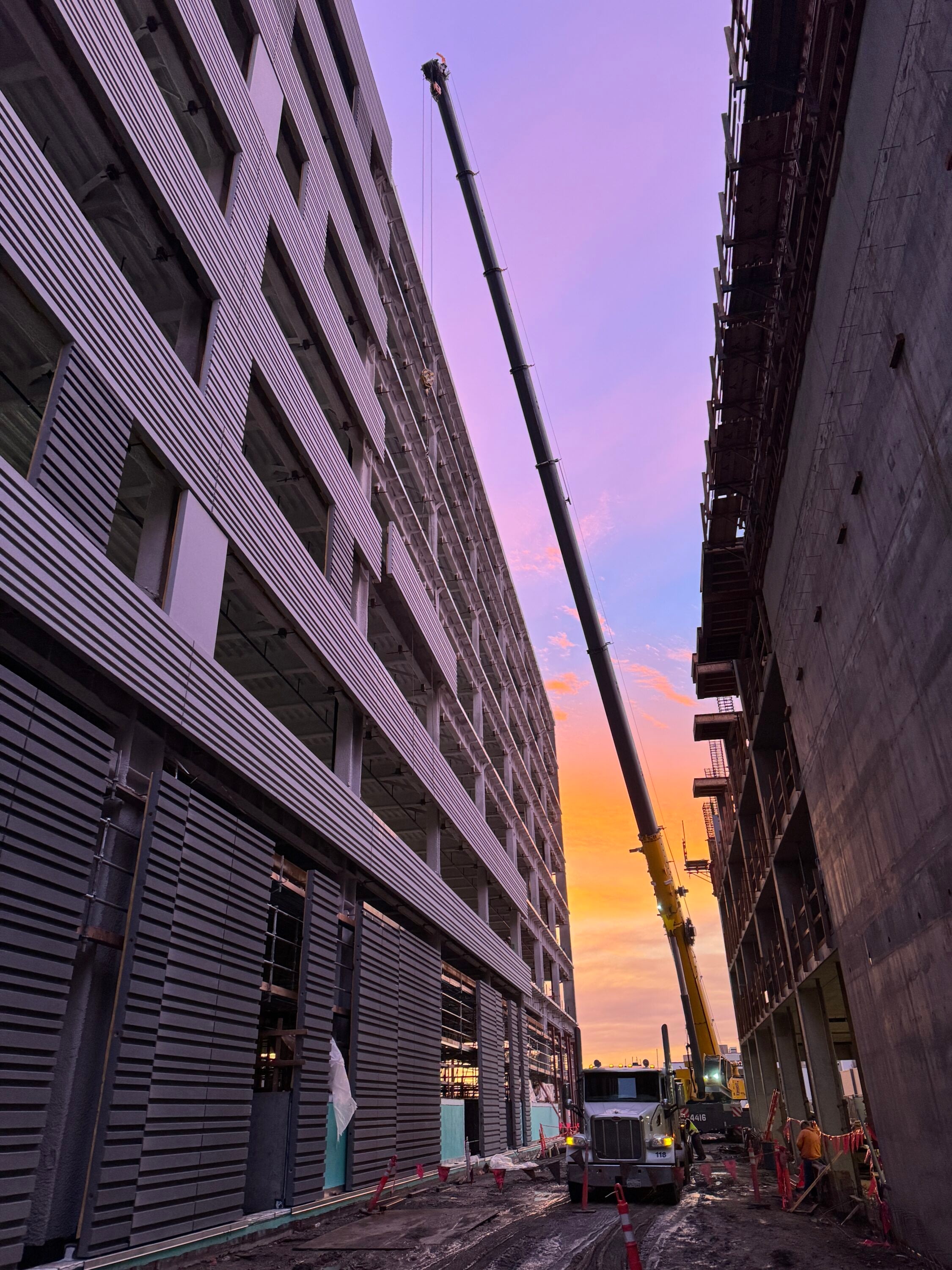 To support the project’s aesthetic and performance goals, Clark Pacific manufactured and installed 61,392 square feet of architectural precast concrete panels, including ribbed wall panels, spandrels, and column covers. Each panel was backed with spray foam insulation to improve thermal efficiency and enhance the building envelope. The use of precast concrete provided a durable, visually striking solution while reducing onsite labor and construction time.