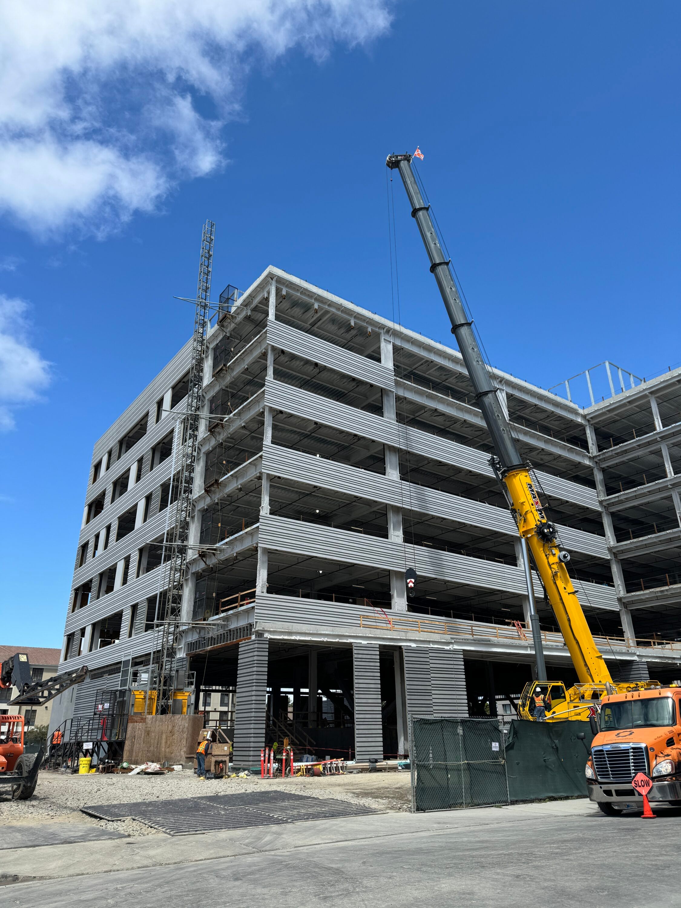 Clark Pacific provided architectural precast concrete solutions for The Landing, a landmark life sciences campus in South San Francisco. This premier development includes two high-rise laboratory and office towers—Nomar North and Nomar South—and a standalone eight-level parking structure. Together, the towers deliver over 476,000 square feet of lab space and 6,400 square feet of retail, supporting the region’s growing biotech and life sciences sectors.