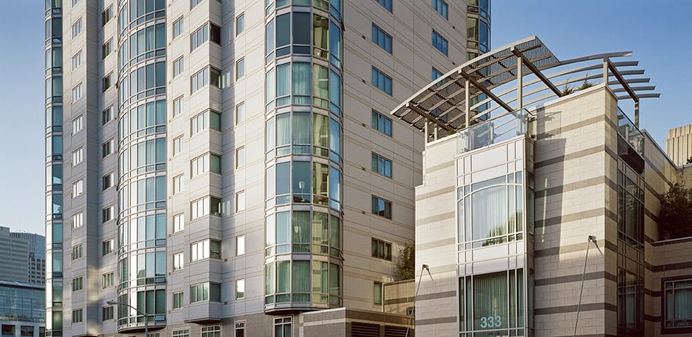 Nestled between San Francisco’s Financial District and the Embarcadero, the award-winning Metropolitan was the first major development built in the Rincon Hill/South of Market District after the 1989 Loma Prieta Earthquake. This high-rise residential project is comprised of two towers above a 3-story podium with four levels of below ground parking. These twin condominium towers –one with 26 stories, the other with 20 stories – comprise a total of 342 living units. Exterior features include precast punched windows with integral color and multiple textures. The project consists of 100,000 sq ft of design-build architectural precast.