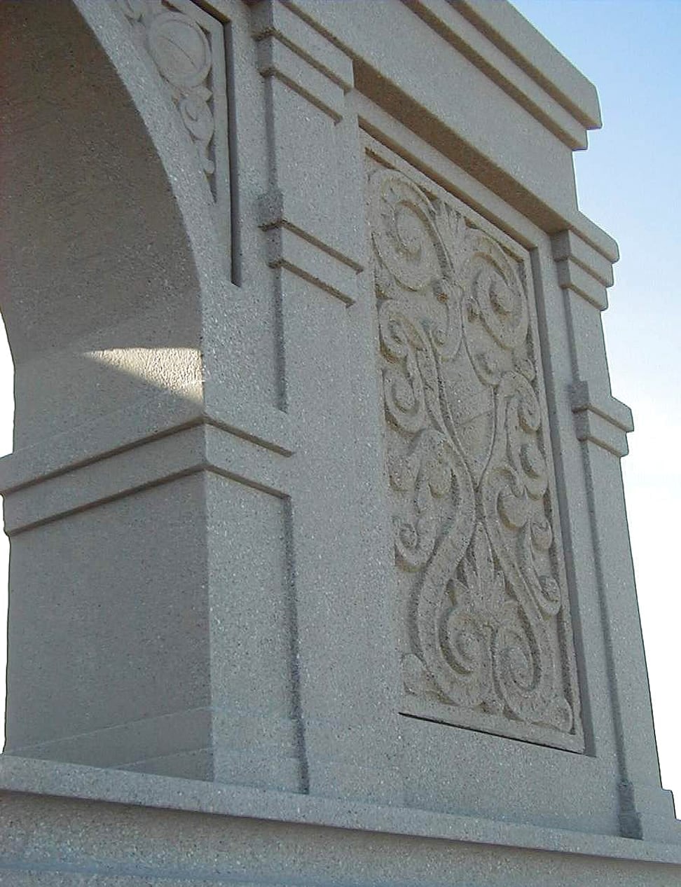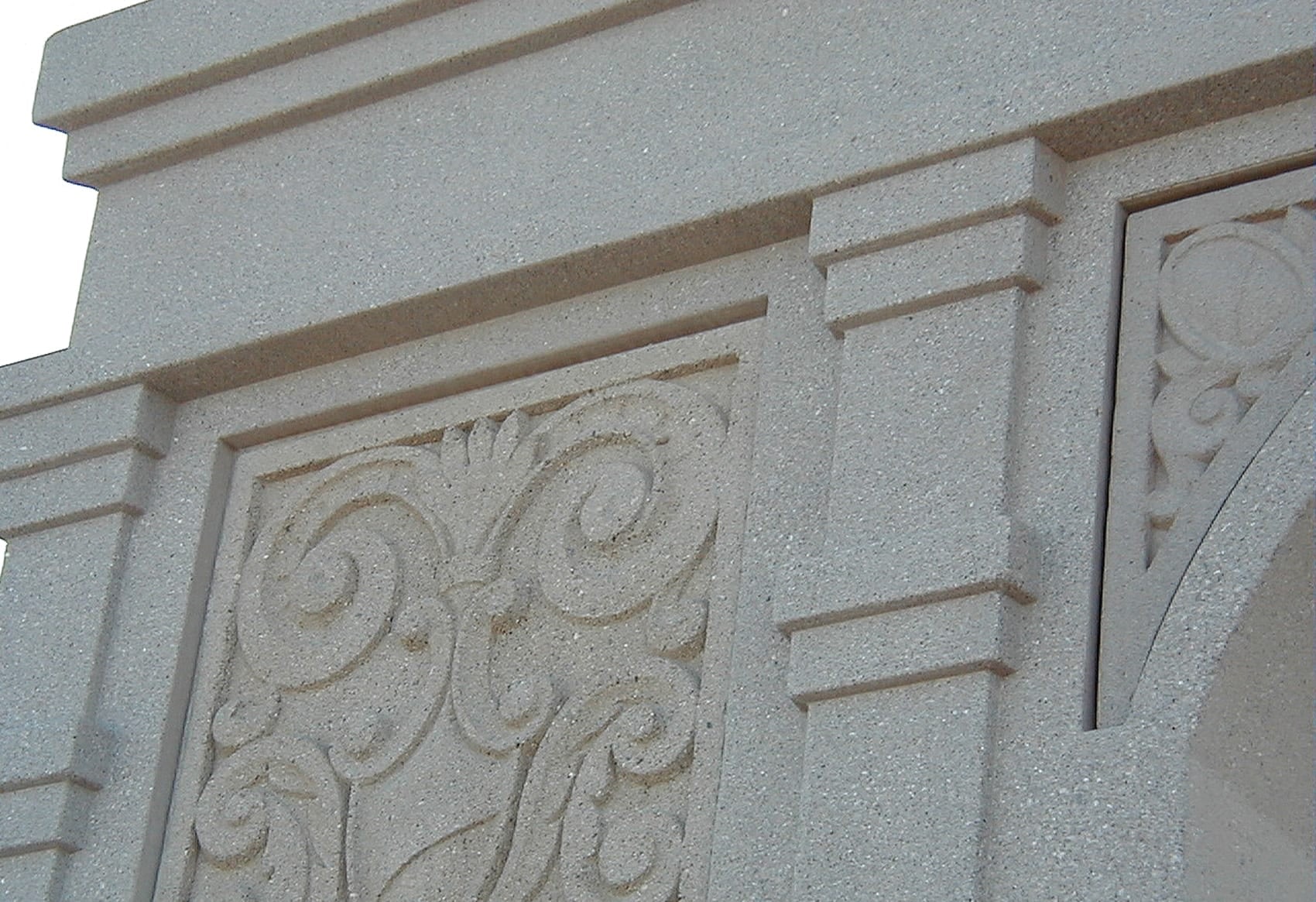 Precast panels mounted on a steel frame offered the best solution to reduce the weight of the original masonry and cast stone construction and remedy the structural deficiencies of the original design that failed. In addition, precast concrete panels were able provide a material to match the original texture after several tests with varying degrees of sandblasting and aggregate placement. A color match was achieved through careful selection of aggregates from areas close to the original source.